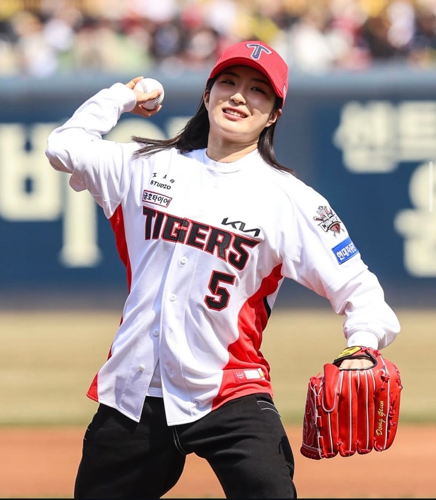 | 지난해 기아 타이거즈의 프로야구 홈 경기 개막전 시구자로 나선 김길리의 모습. [기아 타이거즈 제공] |
