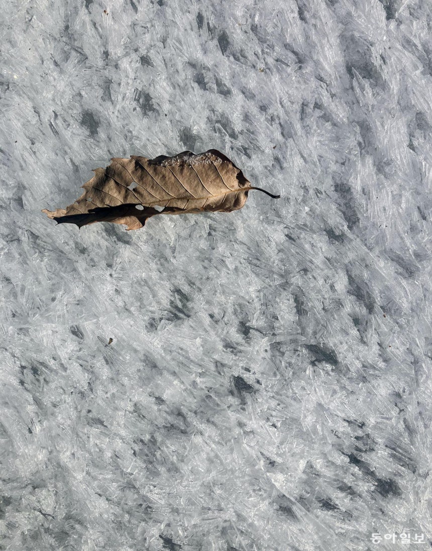 계곡물이 바람결을 따라 얼면서 화가의 붓터치 같은 무늬를 만들어 냈습니다. 여기저기서 봄소식이 들려오지만, 깊은 산속은 아직 꽁꽁 겨울입니다.