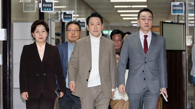 | 장동혁(왼쪽 세 번째) 국민의힘 대표를 비롯한 최고위원들이 22일 국회에서 열린 비공개 최고위원회의에 참석하고 있다. 연합뉴스 |