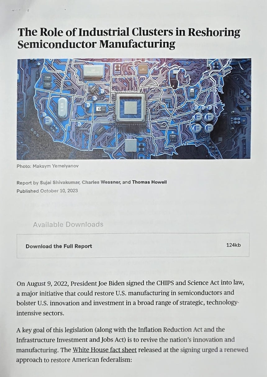 “오랜 기간에 걸쳐 형성된 기존 클러스터의 확장이 신규 건설보다 훨씬 효율적이라는 이야기도 나온다”면서 ‘미국의 반도체 제조 역량 강화와 관련한 산업 클러스터의 역할(The Role of Industrial Clusters in Reshoring Semiconductor Manufacturing)’이란 제목의 보고서를 소개한 것이죠.
