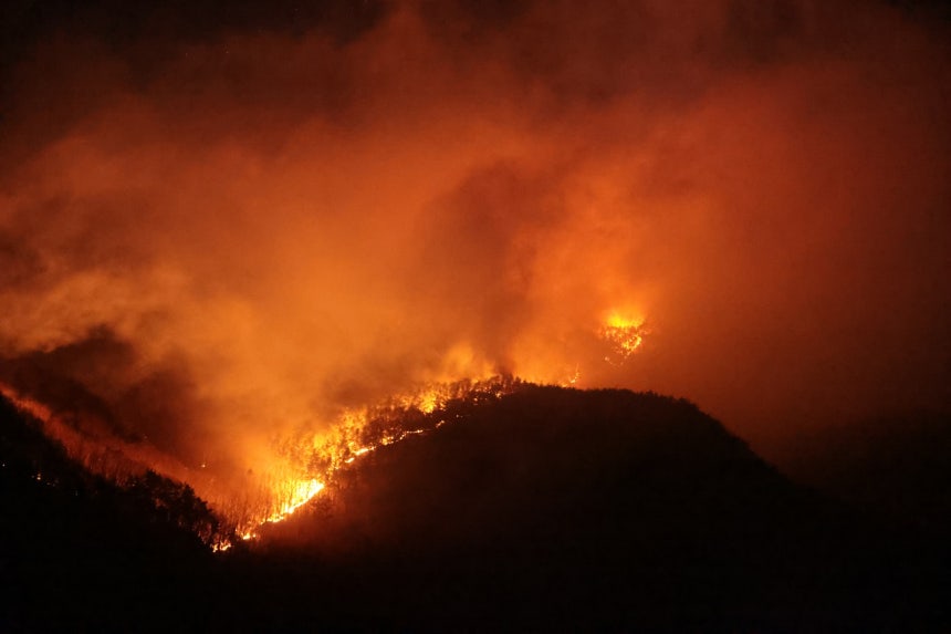 경남 함양 산불 현장. 22일 오후 7시 40분 현재 법화산 정상까지 번졌다.