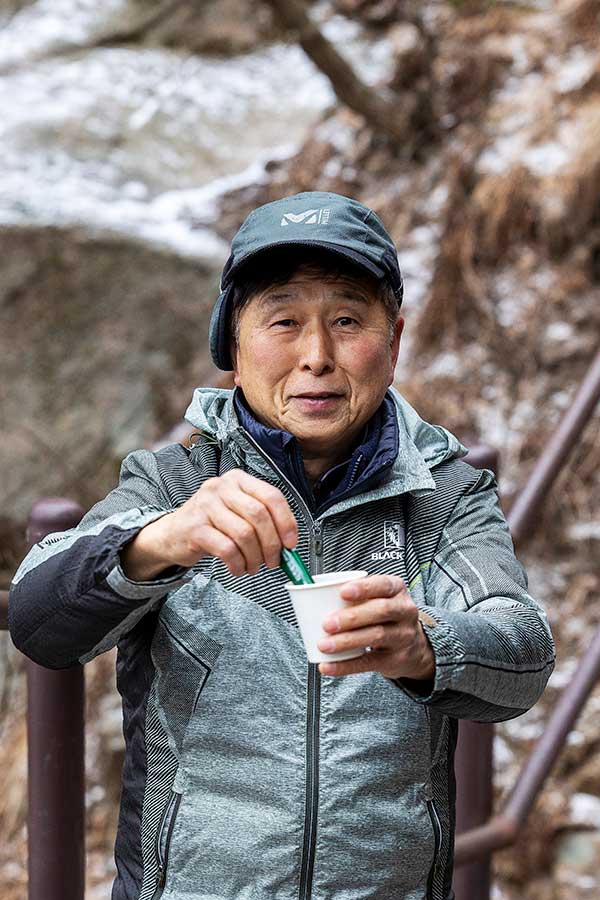 아, 역시 커피는 산에서 마셔야 제맛이지" 변형균(70) 경기 남양주시 "1년에 300일은 산에 다닌다"는 산꾼이다. "도봉산과 북한산의 모든 코스를 외우고 있다"는 그는 유제품 제조업에서 정년을 채우고, 지금은 텃밭에서 채소를 기르며 격일제로 소일거리를 하고 있다. "다음날 집에서 누워 있는 것보다 피곤하더라도 산에 가는 게 오히려 피로회복에 좋다는 것을 경험으로 깨달았다"고 한다. 직장 다닐 때부터 산에 오면 오직 자신만의 시간을 가지면서 꼬였던 문제가 풀리는 게 좋았다고. 한라산도 스무 번은 올랐는데, 1987년 신혼여행 때 아내와 함께 한라산에 올랐던 기억이 각별하다. 5년 전부터 아내는 혈압 때문에 집에서 쉬고 지금은 혼자서 산을 즐긴다.